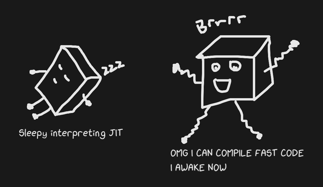 If you are familiar with how JITs generally work (if you get what the title is referring to), I recommend skimming this or going straight to reading How JIT Compilers are Implemented and Fast: Julia, Pypy, LuaJIT, Graal and More